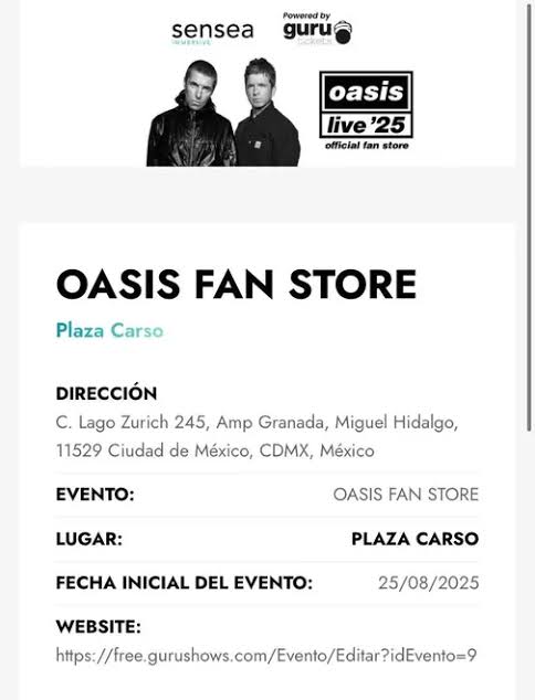 Como parte de la gira Oasis Live ’25, la icónica banda británica ha abierto su tienda oficial, Oasis Fan Store, en la Ciudad de México, ubicada en Plaza Carso (Calle Lago Zúrich 245, Ampliación Granada, alcaldía Miguel Hidalgo).
